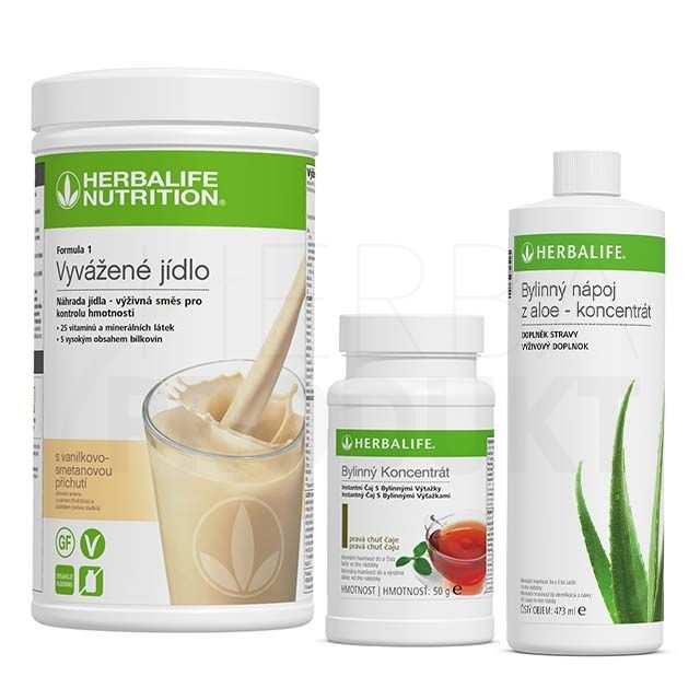 Formula 1 Herbalife 550g bezlepková (ve všech příchutích) Aloe 473 ml (bez příchutě/příchuť Mango) a Thermojetics 51g (tradiční příchuť čaje/citrónová příchuť/broskvová příchuť)